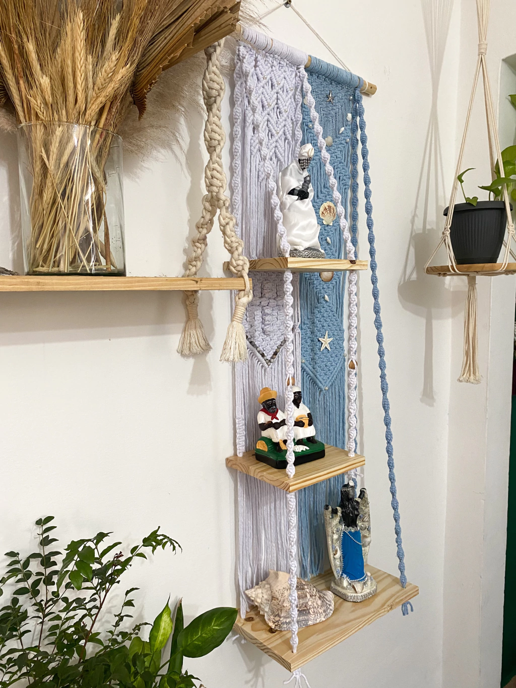Experimente a harmonia e a espiritualidade em seu lar com o Painel Triplo - Altar Personalizado. Composto por 02 prateleiras de 20x20 cm e 01 prateleira de 40x20 cm, este altar é ideal para cultuar até 03 divindades no mesmo espaço sagrado.